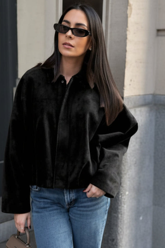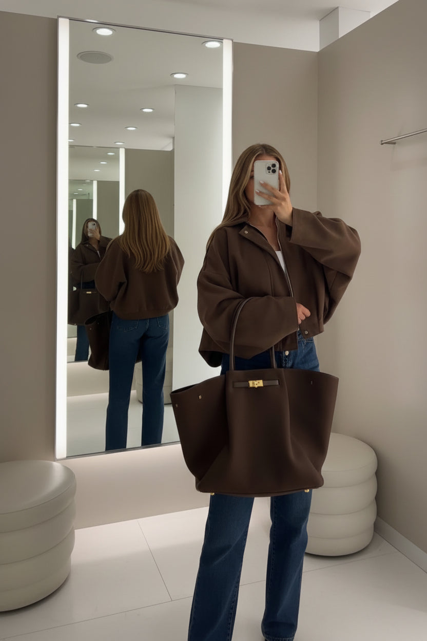 La giacca oversize unisce carattere e versatilità con un taglio ampio, spalle larghe e linee pulite che donano un’allure contemporanea e sofisticata.